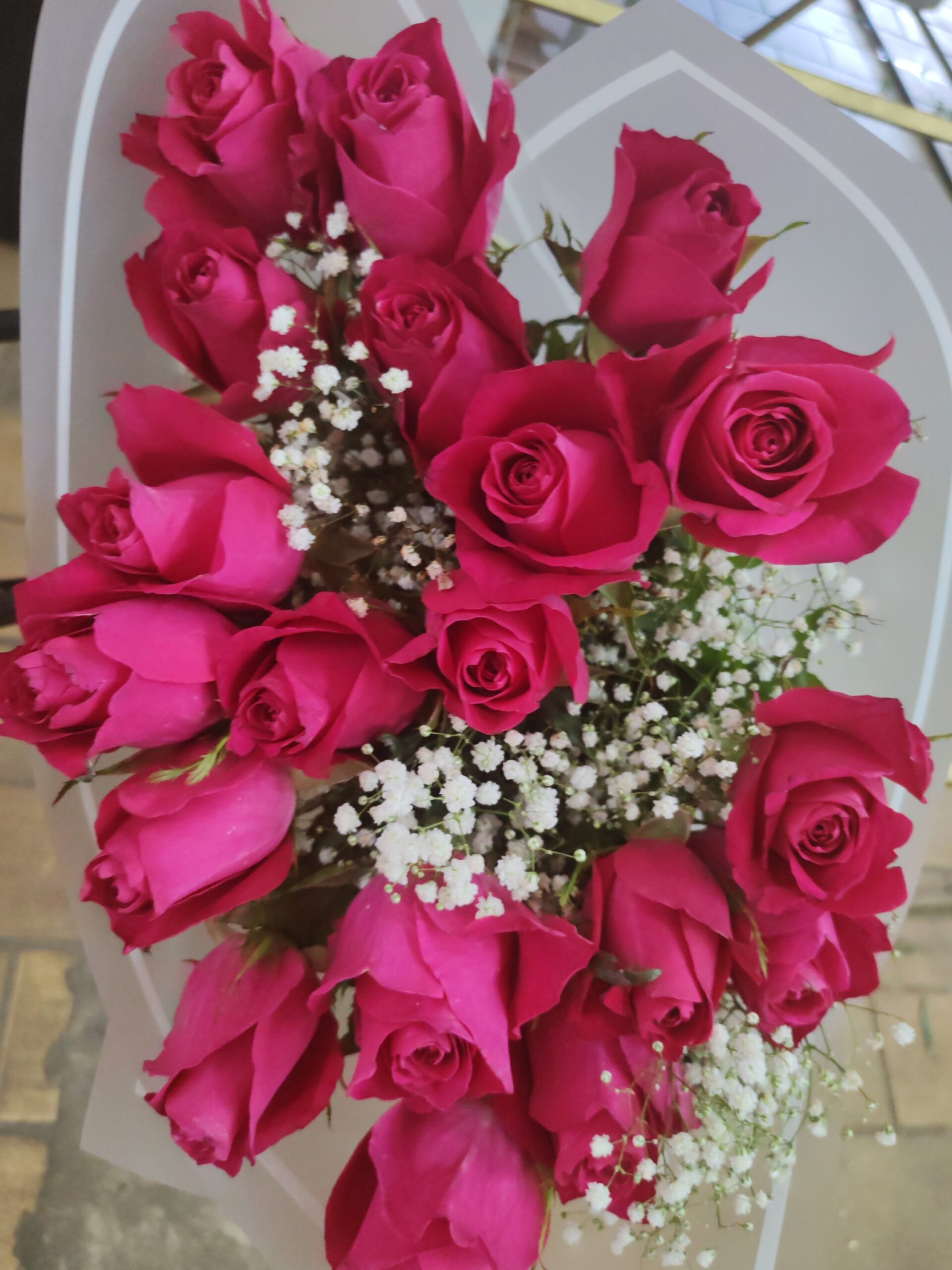 A mixed bouquet of roses, gerberas & lilies.