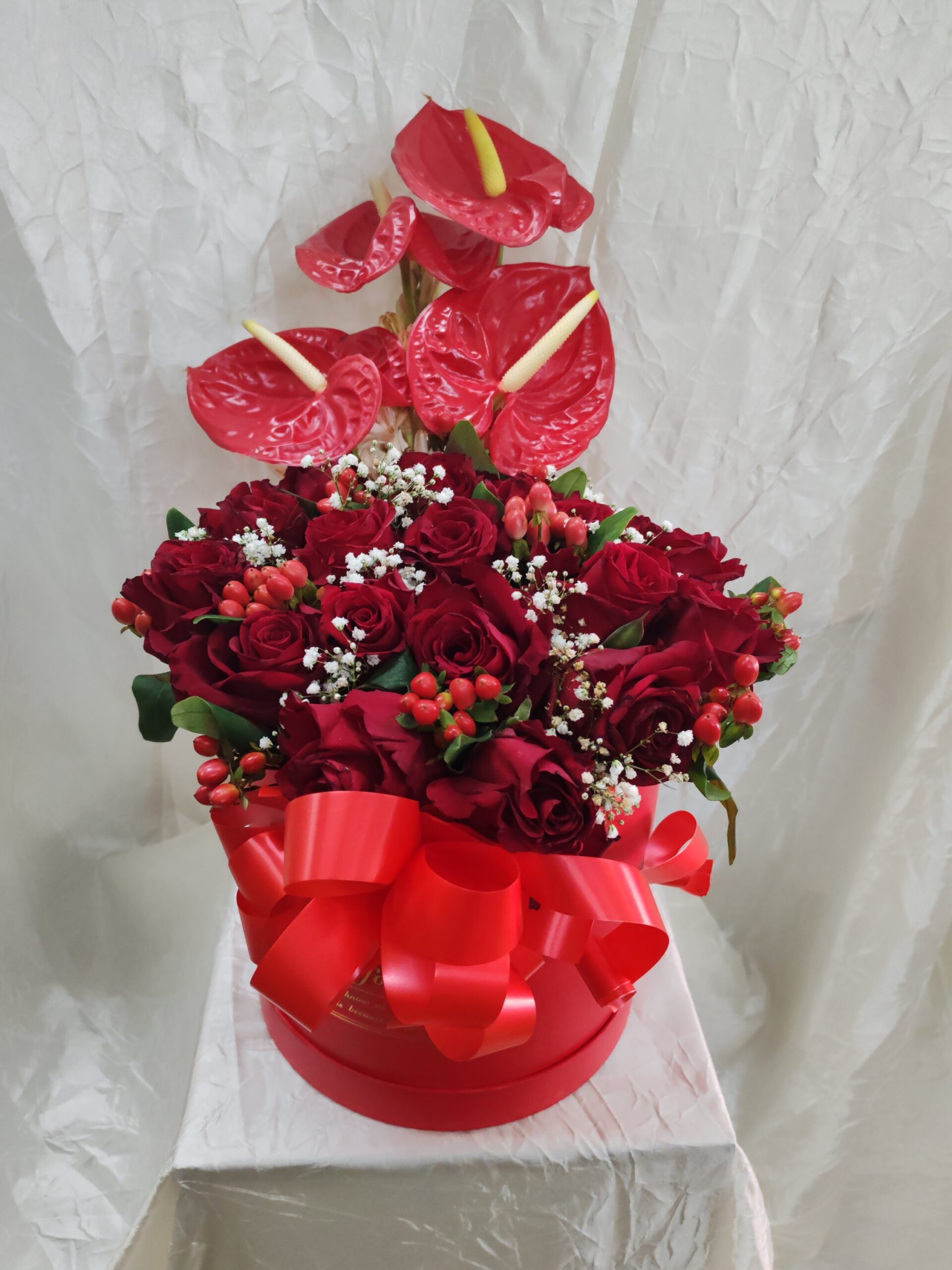 Red roses in box